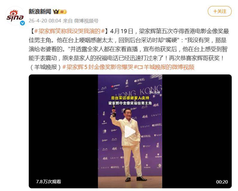 从影数十载,五夺金像奖影帝,梁家辉用无数经典角色证明了“千面影帝”的硬核实力。而这一次,他在聚光灯下上演的这出“深情感谢”与“幽默拆台”的独家小品,则让所有人看到了这位传奇演员戏骨之下,那份对家庭的珍视与举重若轻的可爱人生智慧。恭喜家辉哥,这份奖杯与幸福,都实至名归。